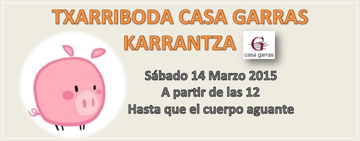 Casa Garras quiere invitaros a la TERCERA TXARRIBODA POPULAR CASA GARRAS EN KARRANTZA este sábado 14 marzo a partir de las 12h. A continuación os mostramos el protocolo de la matanza, con todas las actividades que te harán disfrutar de una inigualable jornada en buena compañía y con mejor gastronomía. Os esperamos a todos para celebrar con vosotros una de las tradiciones más características de nuestra comarca.