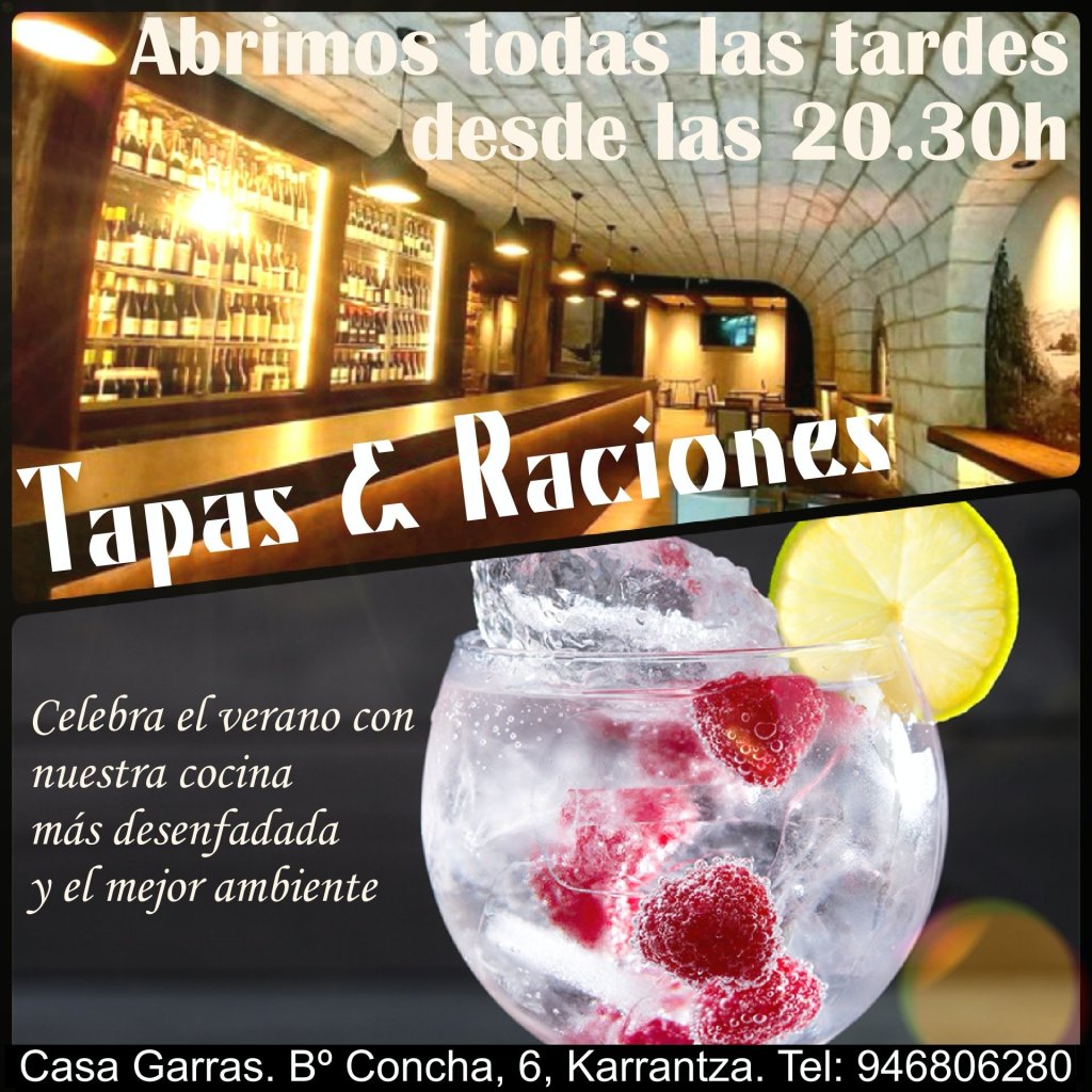 Cocina de TAPAS & RACIONES desde las 20.30h.