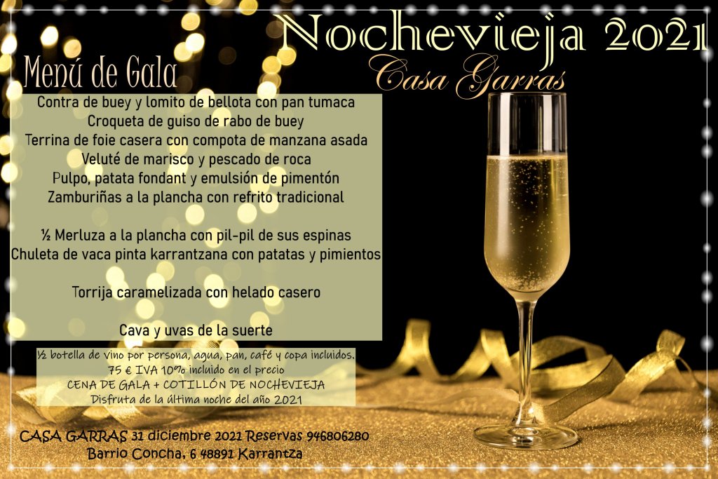 Como siempre, queremos despedir el año con vosotros. Celebramos la última noche del año por todo lo grande: Cena de Gala y Cotillón de Nochevieja en Casa Garras!!! No olvides reservar en el 946806280, vestir tus mejores galas y prepararte para disfrutar de la mejor noche del año!!! Tomaremos juntos las uvas de la suerte y brindaremos con cava por el 2022, ¡¡¡no olvides pedir tus mejores deseos para este año nuevo!!!