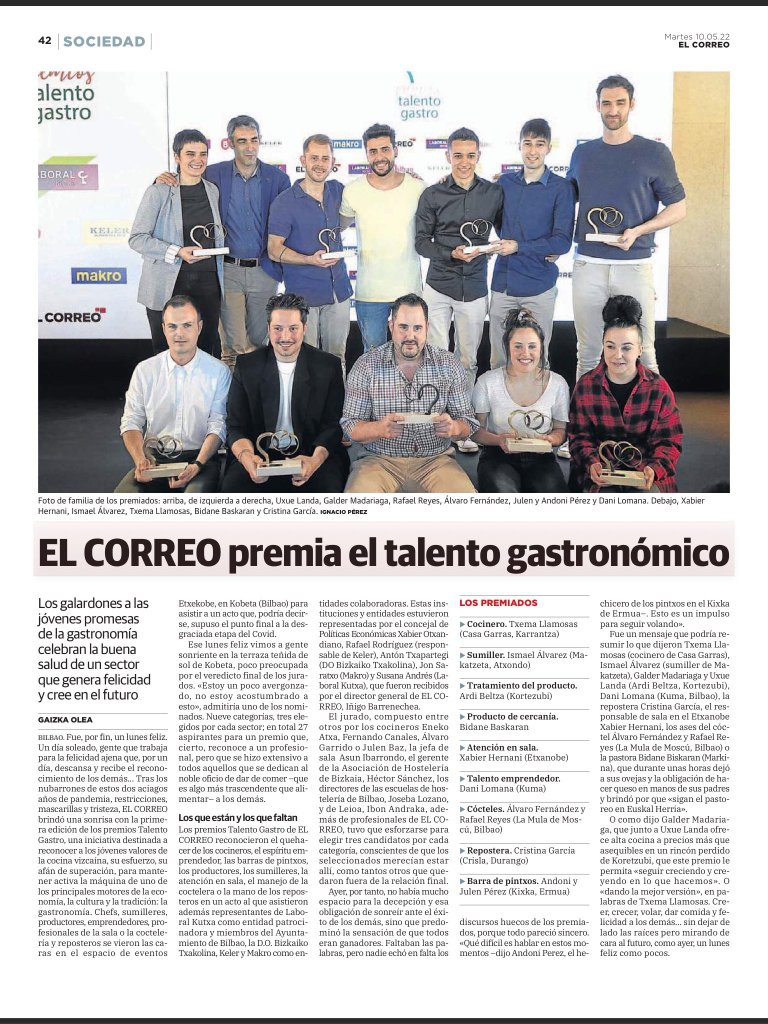 Txema Llamosas, de Casa Garras (Karrantza), ganador en la categoría de mejor cocinero en los Premios Talento Gastronómico de Jantour (El Correo)
