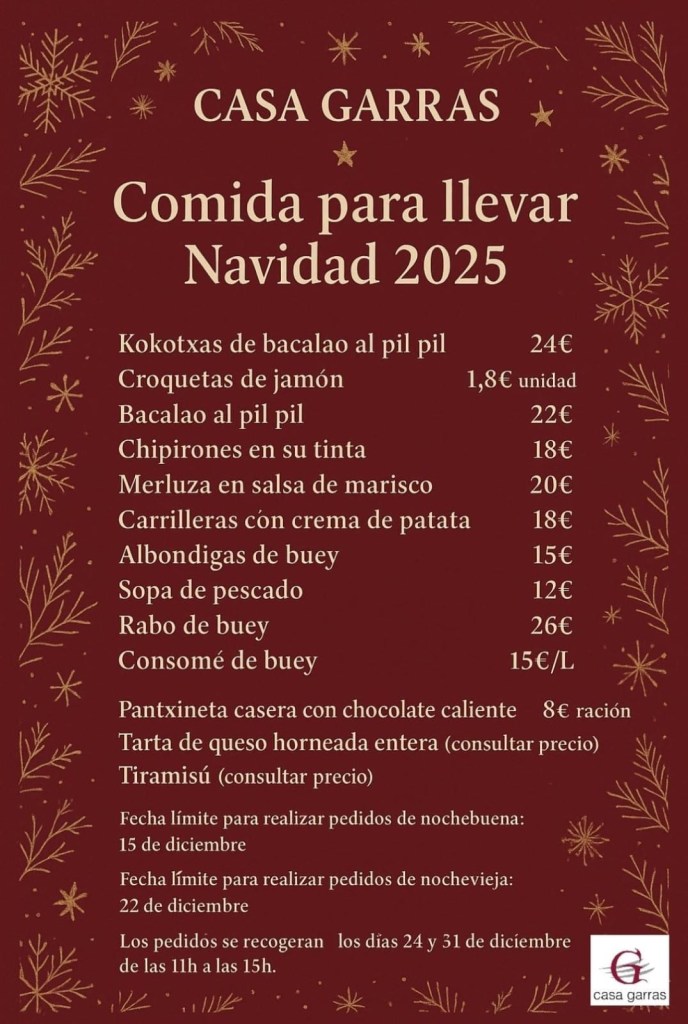 #CasaGarras #Navidad2025 #ComidaParaLlevar #GastronomíaVasca #NavidadGourmet #SaboresDeSiempre